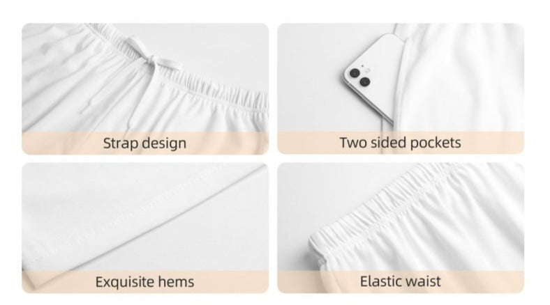 - Design: Elastic waistband with two side pockets